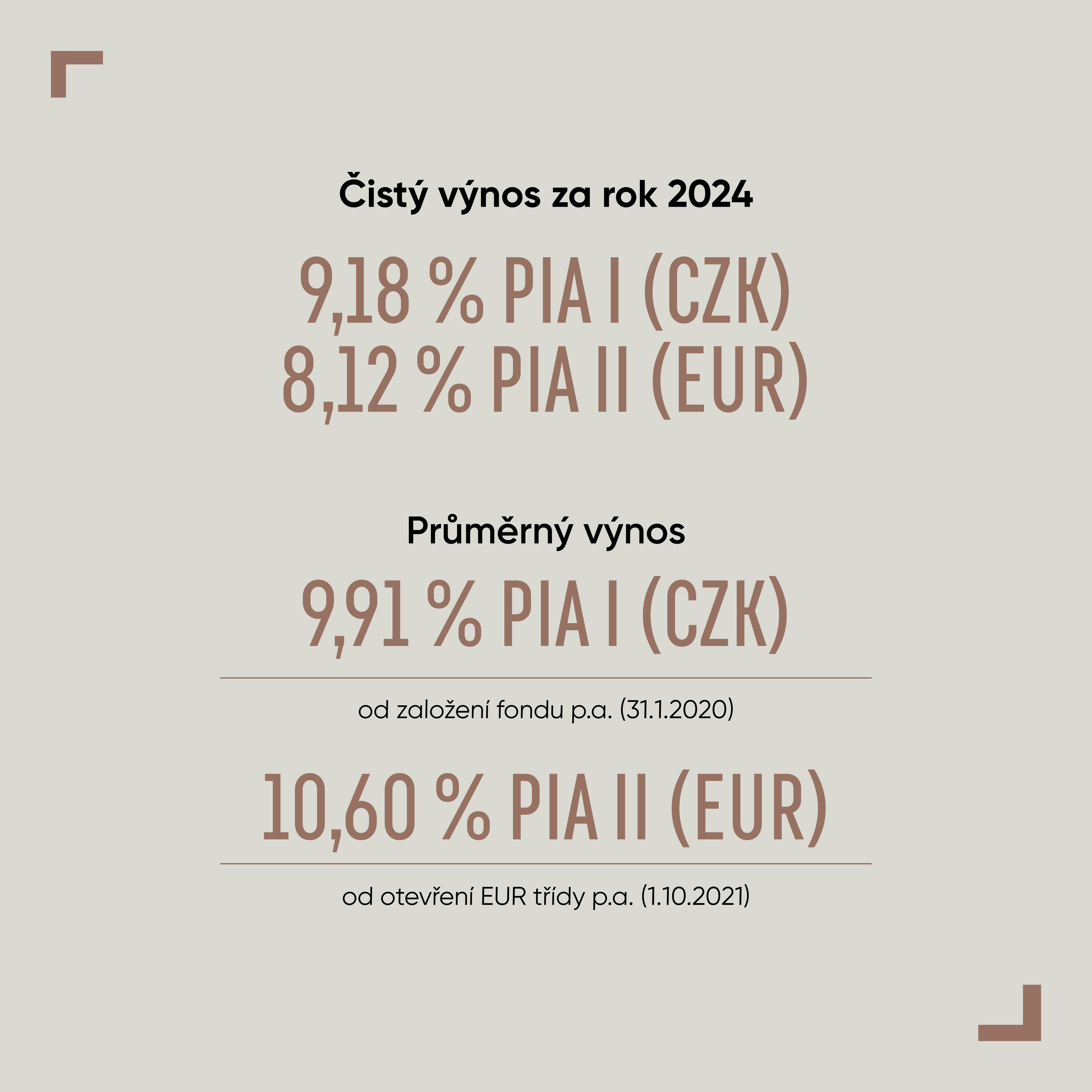 Fond kvalifikovaných investorů REALIA FUND SICAV se pochlubil výsledky za rok 2024. Investorům přinesl čistý výnos 9,18 % (CZK akcie) a 8,12 % (EUR akcie). Od svého vzniku v roce 2020 dosahuje průměrného ročního zhodnocení 9,91 % p.a., což dokládá jeho schopnost přizpůsobit se tržním výkyvům.