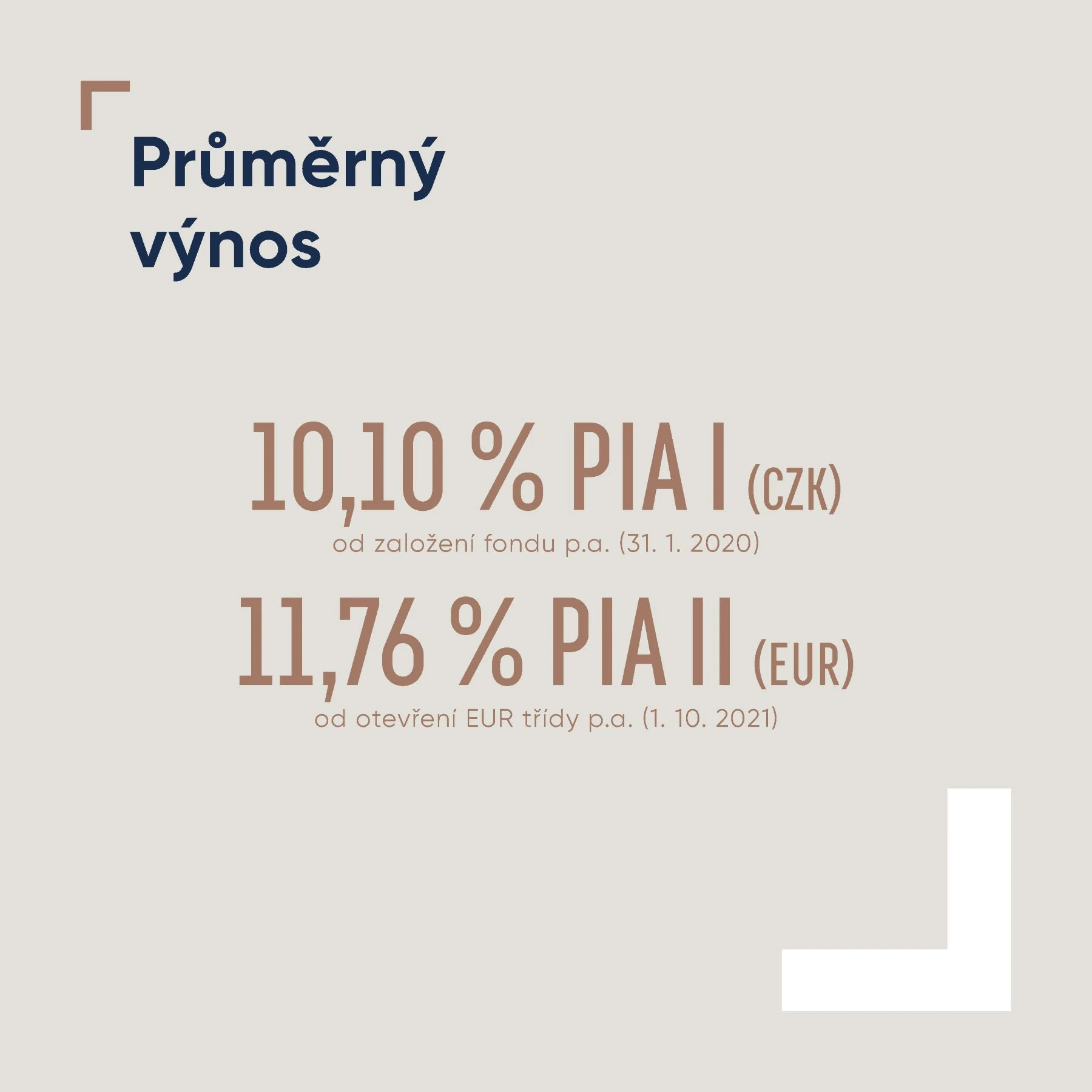 - průměrný výnos v EUR třídě je 11,76 % p.a. (26 měsíců)